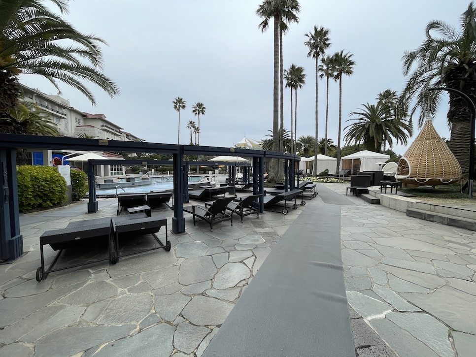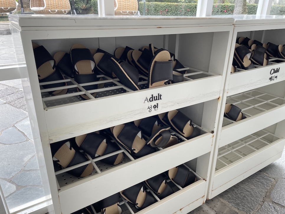 객실 가운을 입고 갔는데 제주 신라호텔 수영장은 이렇게 가운도 사이즈별, 신발도 사이즈별