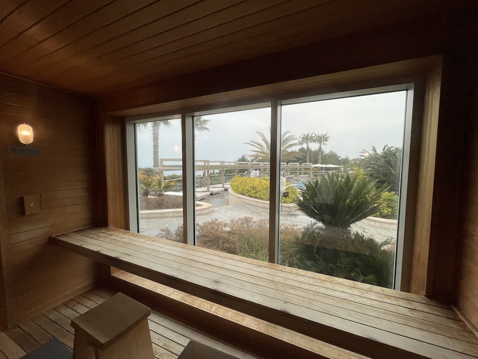 제주 신라호텔에 수영장에는 아래쪽과 어덜트 풀 모두 체온유지를 위한 사우나가 준비되어 있습니다.